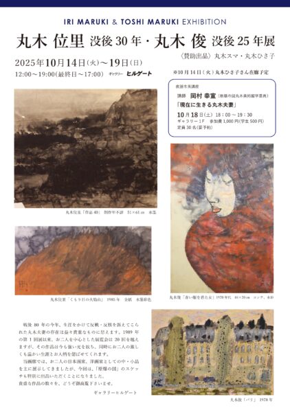 2025年10月14日~19日に京都のギャラリー・ヒルゲートで「丸木位里没後30年・丸木俊没後25年展」(賛助出品:丸木スマ・丸木ひさ子)が開催されます。
